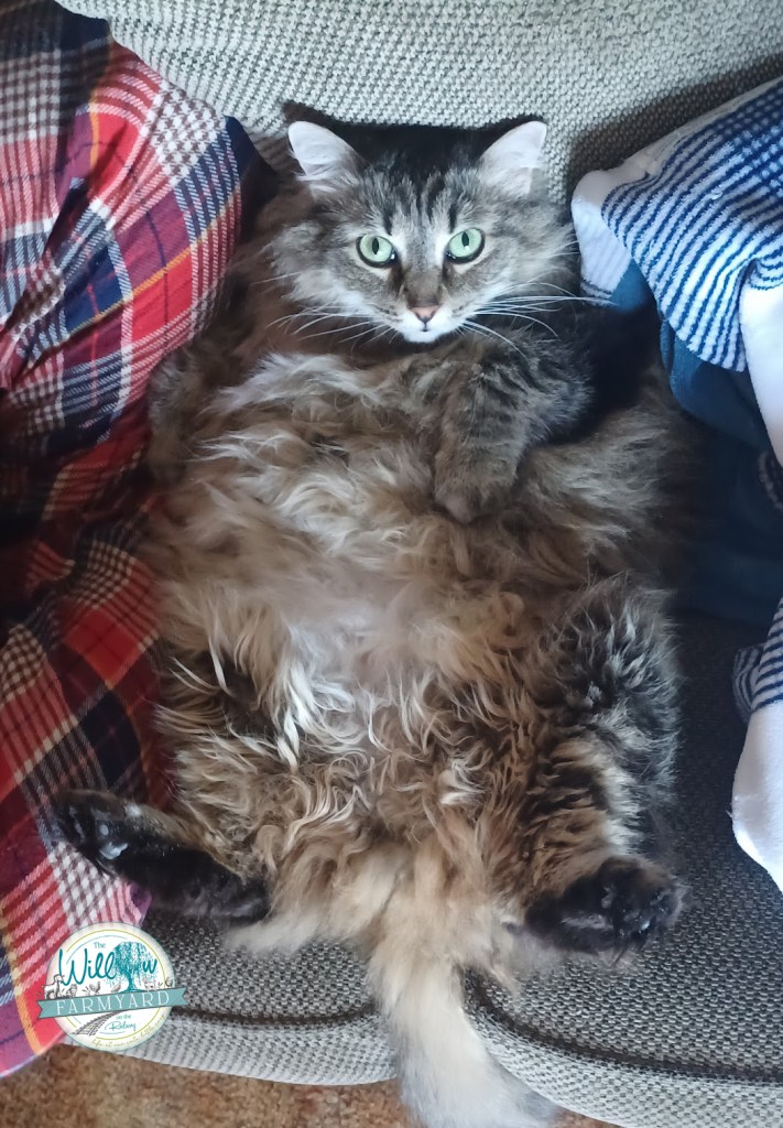 I have no idea why. I had no indication that anything was wrong. She had been underfoot like normal when I’d been working in there. She’d been eating normally so far as I could tell. It was quite a shock to find her. Chris laid her to rest on Friday evening.