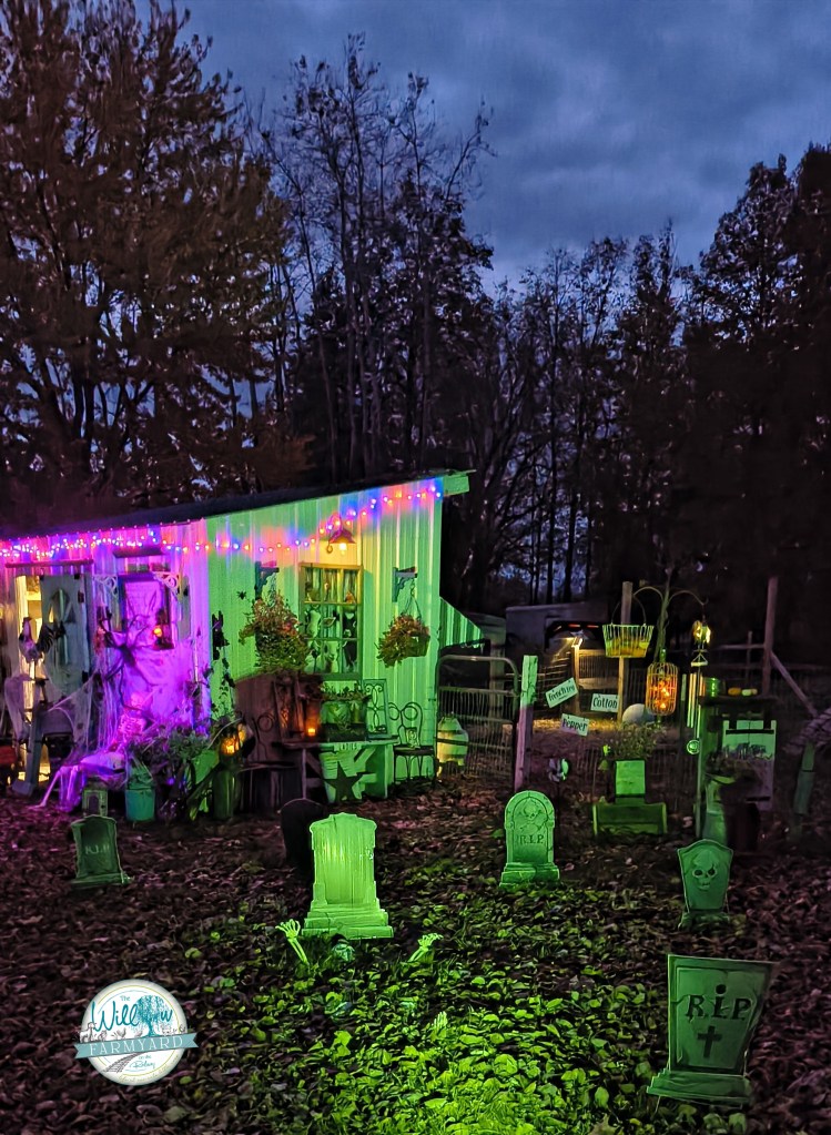 And speaking of things around my coop, one of my favorite things here at the farmyard, is having an area to get fun with during the holidays. Here’s a shot of the coop at Halloween time.