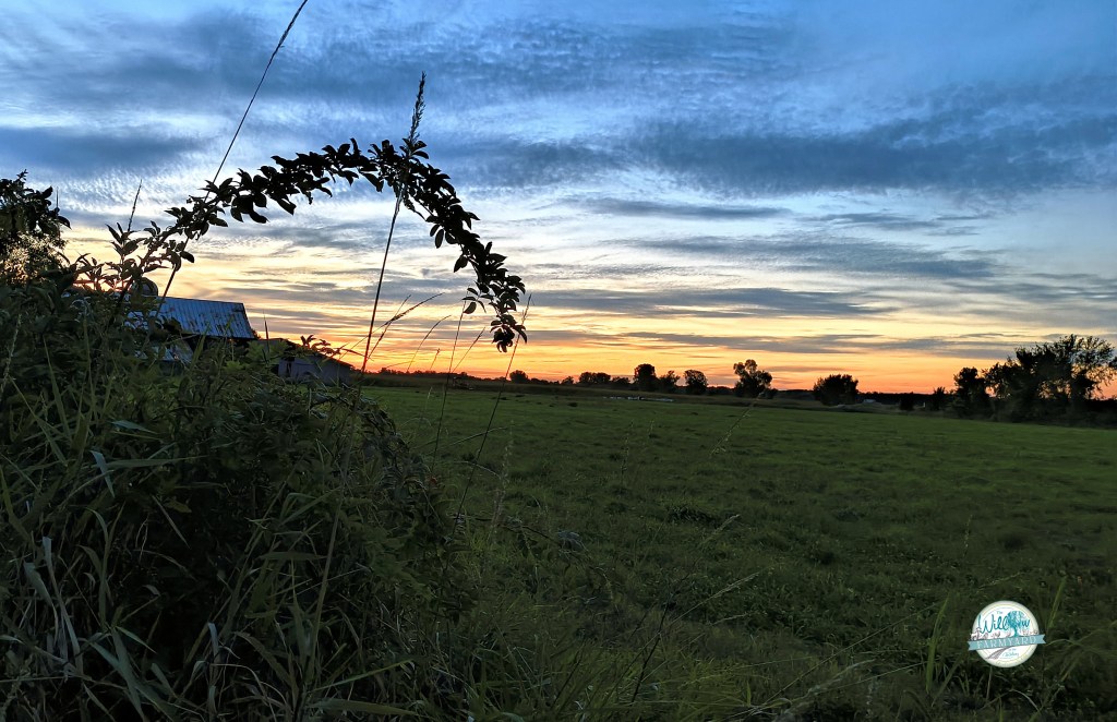 And I enjoy the sunsets from the garden. It butts up to an empty farmer’s field that is too wet to plant or harvest. Here’s on of those sunsets.